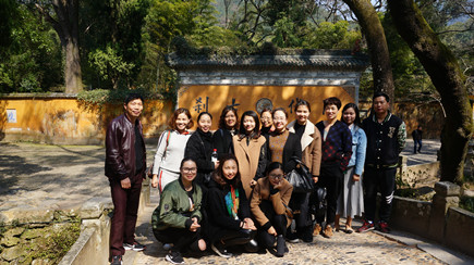 圖為第一批參加人員在瓊臺仙谷合影 上午9點30分,三個所共計40多位員工在集團公司下屬的旅行社導游小孫的帶領下,從臨海結集出發,去往“人與自然和合、人與人和合、人與社會和合”的“和合圣地”——天臺,游覽國清寺和瓊臺仙谷。“和合文化”是天臺山文化的精華,也是中華傳統文化的核心與精髓。近年來,臺州市大力推進“和合文化”品牌建設,全力打造“和合圣地”,賦予“和合文化”新的生命力。大家深處由秀美的自然山水和內涵極豐富的佛道文化構成的天臺山美景中,享受著自在與輕松,整個活動過程更洋溢著“健康、和諧、友好、愉悅”的濃厚氛圍。 此次“一日游”活動,不僅激發了女員工們積極向上、自強不息的精神,也促進了同事之間的感情,增強了隊伍的凝聚力和戰斗力,從而營造和諧美好的氛圍。 鄭瑛芝
