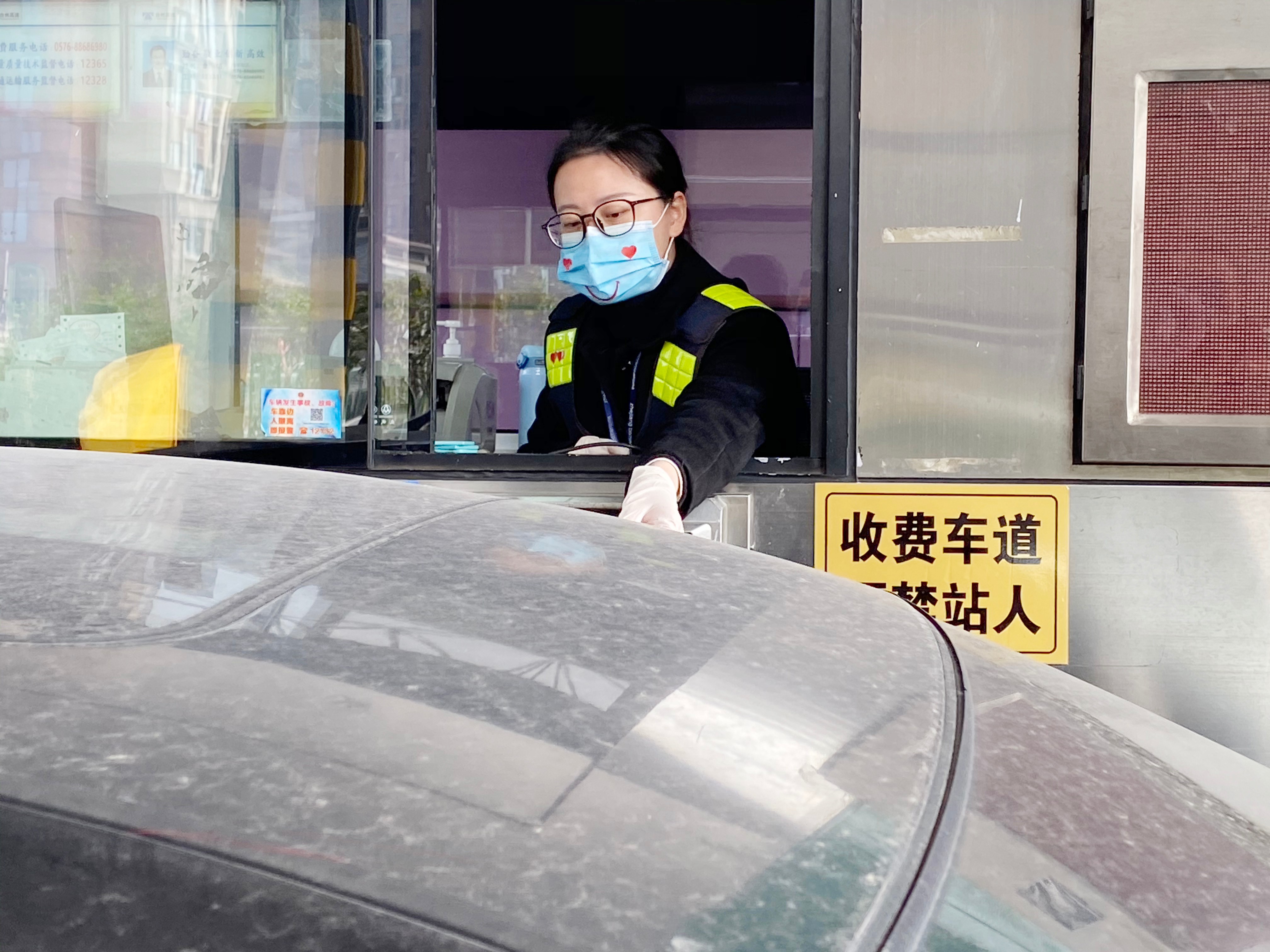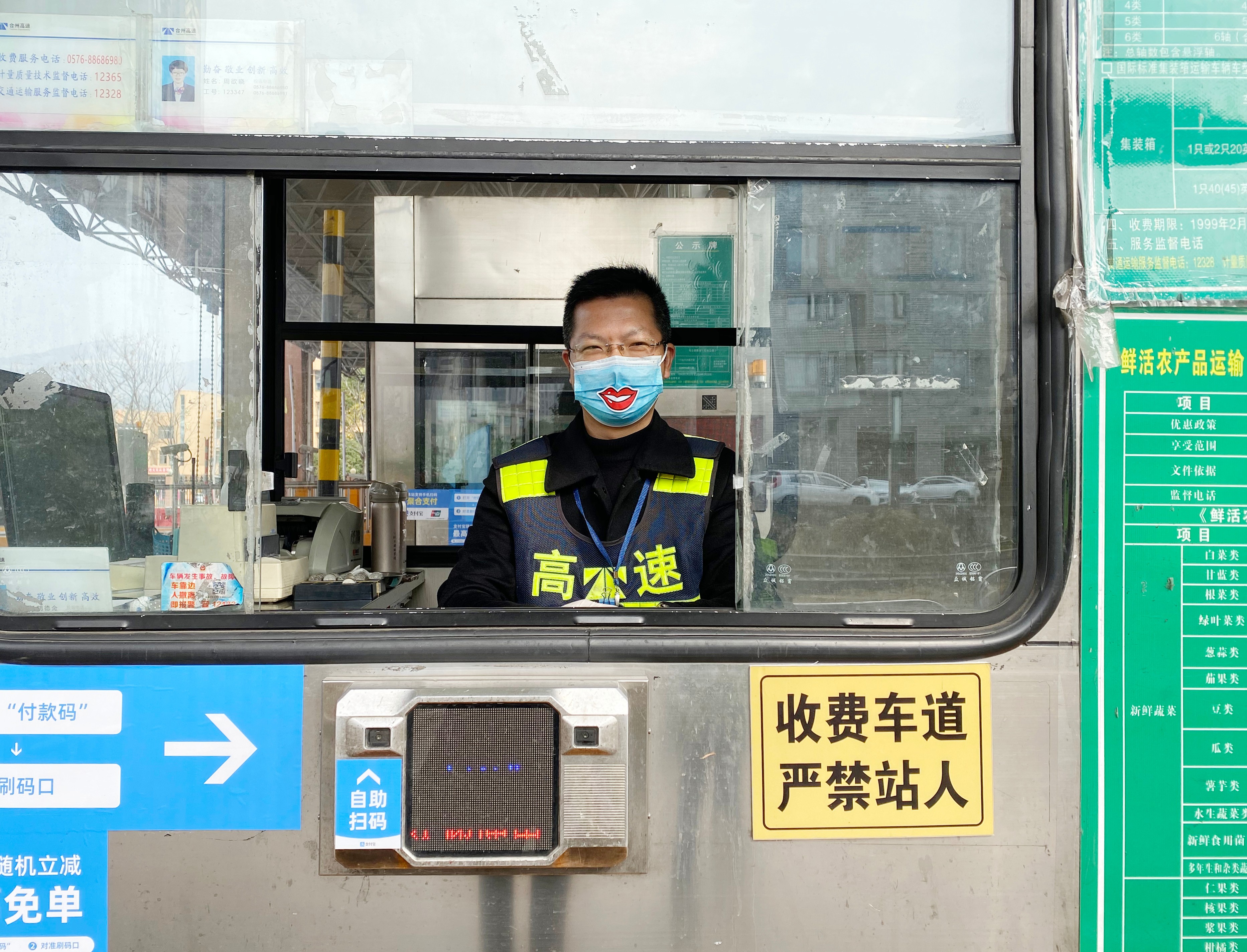我“形”我秀,文明服務 “你的口罩好可愛,好特別”。 新春將近,這聲音來自廣大司乘,縈繞在臺州收費所崗亭。雖然疫情形勢依舊嚴峻,但是暖心文明服務更要堅守。收費員上崗時必須戴上口罩、手套等防護措施,臺州收費所堅持以微笑傳遞服務,反對一層薄薄的防護疏遠與廣大司乘的距離,為了維護窗口形象,提升文明服務,做到冷冬暖心,臺州收費所動腦動心出真招,將一枚枚笑容“印在”口罩上,一個個小小的笑臉,溫暖著來來往往司乘人員焦灼的心,在做好疫情防控工作的同時,也為收費服務增添一絲趣味。 臺州收費所送上一份安全、一心祝福、一抹微笑、一套年味兒,這個回家旅程您還冷嗎? 袁莉