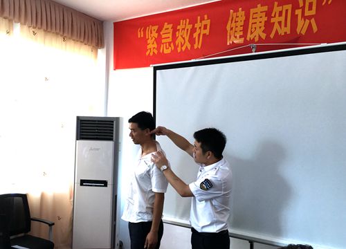 圖為授課現(xiàn)場(chǎng) 授課老師向水平為大家講述了現(xiàn)場(chǎng)心肺復(fù)蘇術(shù):判斷呼吸→高聲呼救→擺體位→打開氣道→人工呼吸及如何進(jìn)行按壓與吹氣,隨后他授以簡(jiǎn)單的醫(yī)學(xué)理論知識(shí),對(duì)高血壓、心臟病、糖尿病等疾病的預(yù)防作了普及。當(dāng)談及上班族普遍面臨的不樂觀的嚴(yán)峻現(xiàn)實(shí):受肩周炎、頸椎病、腰椎間盤突出等職業(yè)病困擾時(shí),向老師以現(xiàn)場(chǎng)演示的方式教大家?guī)渍袀鹘y(tǒng)的中醫(yī)方法——穴位按摩,鼓勵(lì)大家自己動(dòng)手,通過按摩這種最直接的方法,緩解不適。