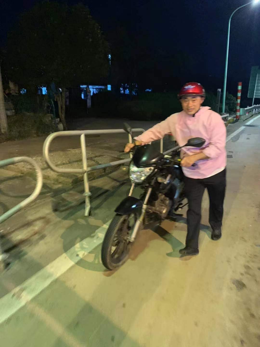 圖為誤入高速的人員 經了解,車上坐的是在臺州打工的兩兄弟,中秋節廠里放假,突然想起回老家江蘇過節,由于路況不熟,按導航提示,稀里糊涂就上了高速。上來后,發現路上車子既多又快,越開感覺心里越是怕怕的,大晚上的也不知道該怎么走,看到有口子就急著下了。 得知情況的周冬子先對兩兄弟普及高速公路禁止摩托車行駛的交通法規知識,隨后根據實際情況給他們推薦了一條相對便捷的國道路線,并建議他們節假日路上車輛較往常要多,為了安全起見,最好選擇白天出行或者坐動車。 兄弟倆表示今后不會再犯這樣的錯誤,對該班長的熱心幫助再三感謝。 周冬子
