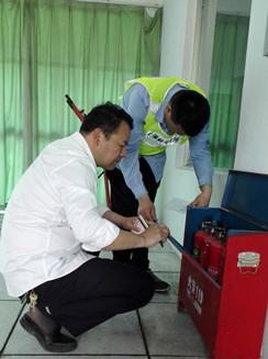 該所副所長應(yīng)錦清帶領(lǐng)隊員仔細檢查了南北配電房的機電設(shè)施,隨后對管理房的干粉滅火器、隧道內(nèi)的泡沫滅火器,配電房、中控室的二氧化碳滅火器進行逐一檢查,查看每個滅火器的壓力值、出氣管有無彎折、堵塞、損傷,壓把和閥體等金屬件有無變形和銹蝕,是否還在使用年限之內(nèi)等等,并做好相應(yīng)的檢查記錄。