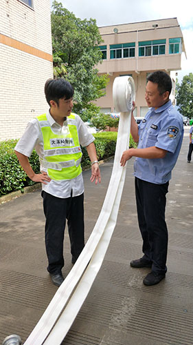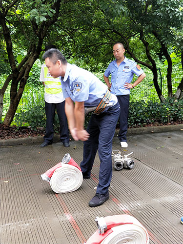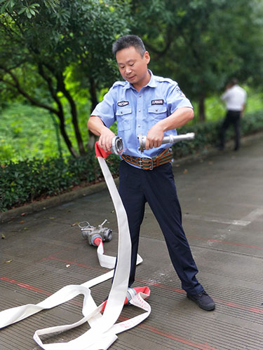 安保人員馮常敏擔任此次主講,授課內(nèi)容為兩盤水帶的鋪設和連接、連貫動作練習。他首先進行講解示范,并分解每一個動作要領。慢慢地教新人如何操作。