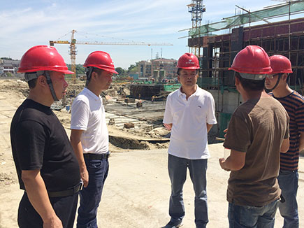 圖為公司工會主席項義超一行在文鼎苑項目工地檢查防暑工作