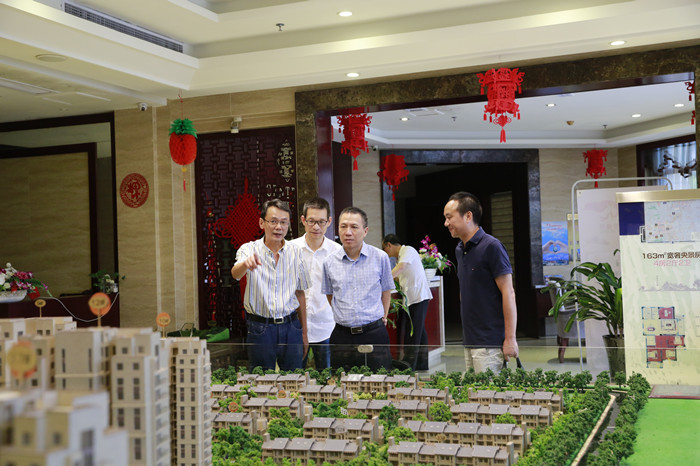 圖為集團副董事長、總經理張建平向工作人員詢問了解剩余樓盤銷售進展情況