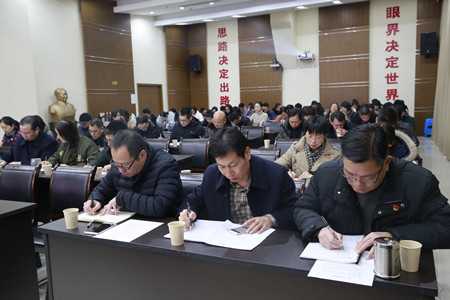 圖為參加學習的黨員領(lǐng)導干部和職工
