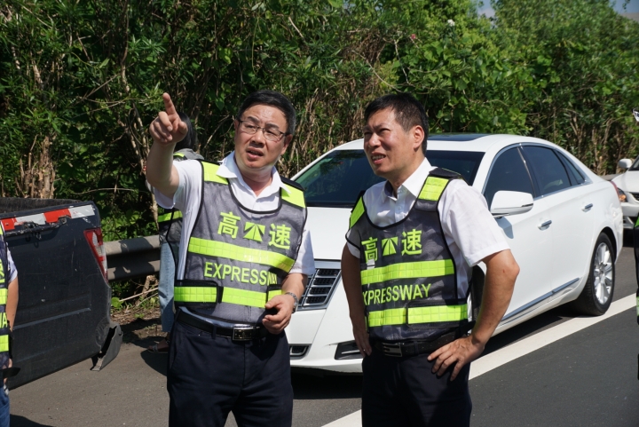 在甬臺溫高速公路臺州段溫州方向主線K1668+200M處現(xiàn)場,陳文波詳細(xì)了解龍門架吊裝的施工工序、取消省界收費站總體施工進展情況、項目時間節(jié)點、人員班組安排及安全措施準(zhǔn)備情況等。
