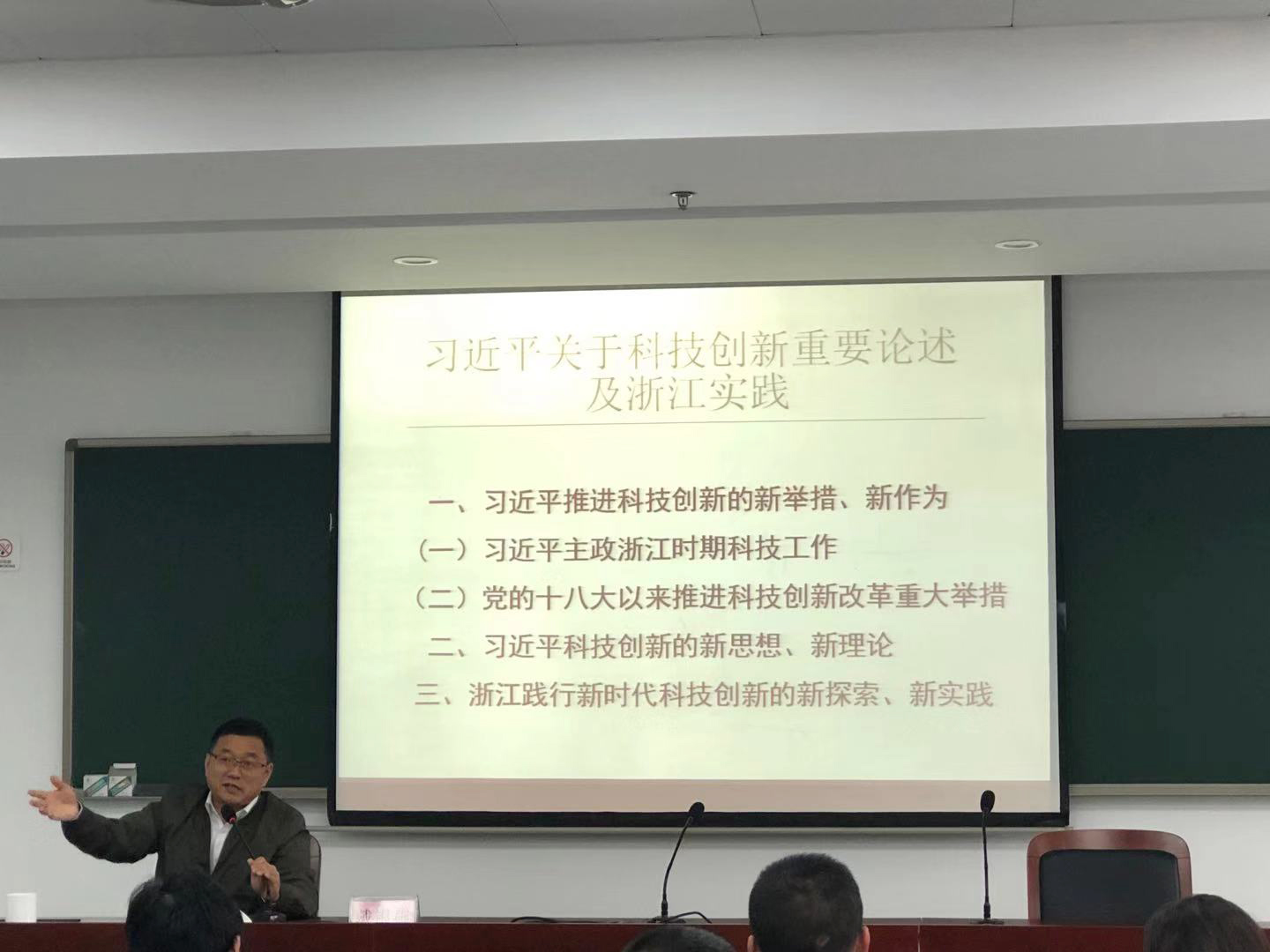圖為浙江省科技廳教育培訓中心副主任戴銀燕以《習近平科技創新及浙江實踐》為題授課