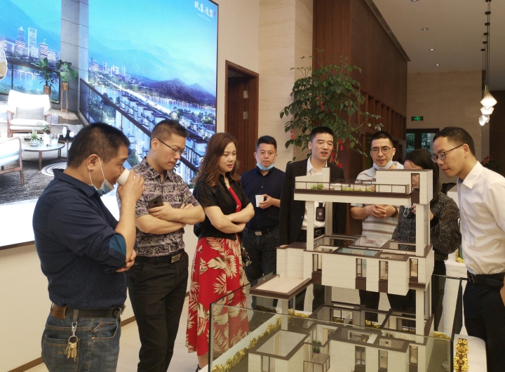 圖為陳文波對(duì)照?qǐng)D紙了解樓盤情況 在銷售展廳樓盤沙盤前,陳文波聽取了高速房產(chǎn)(集團(tuán))公司負(fù)責(zé)人關(guān)于玖璽逸墅項(xiàng)目銷售計(jì)劃、認(rèn)籌客戶等情況匯報(bào)。他對(duì)前期房產(chǎn)公司的辛苦付出給予充分肯定,要求大家認(rèn)真服務(wù)好每一個(gè)來訪客戶,彰顯出國企品質(zhì),全力做好銷售工作。 當(dāng)天,銷售展廳樓內(nèi),陸陸續(xù)續(xù)有客戶進(jìn)出,“我很早就看中這個(gè)樓盤了,不僅位置好,而且采光好、通風(fēng)好,居住在這里一定非常舒服?!币幻麥?zhǔn)客戶張女士夸贊道,今天她特意前來交付認(rèn)籌金。  圖為客戶在疊墅沙盤前參觀