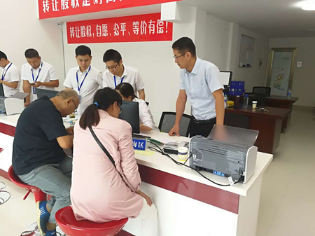 圖為集團副董事長、總經理張建平在椒江收購點為股東服務
