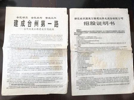 臨近中午的時候,來了一位面目普通的中年人,他準備了他父親和母親的身份證還有銀行卡,工作人員以為是兩筆代辦業(yè)務(wù),原來是查詢股東紀錄的,查詢的股東名字叫婁巖奶,因為巖奶兩字比較少見,我記得上午的時候辦理過一個叫巖奶的股東的收購業(yè)務(wù),就非常好奇的詢問,這時候管理處的工作人員解釋,他們這里有兩個叫巖奶的人,一個是婁巖奶,一個是宋巖奶,經(jīng)過查詢卻沒有找到婁巖奶的股東信息。據(jù)管理處工作人員回憶,1993年婁巖奶當時還未退休,應(yīng)該購買了股票。經(jīng)過查詢管理處的退休人員清冊,發(fā)現(xiàn)婁巖奶于1994年12月才退休,根據(jù)初步判斷估計該股東可能當時出于各種原因并沒有購買股票。為了慎重起見,于是工作人員請求管理處把股票購買的原始檔案調(diào)閱出來查看,翻開斑駁的原始記錄,一個一個仔細查詢股東姓名,但是很遺憾并沒有該股東的信息,工作人員肯定地回復(fù)了股東。雖然讓婁巖奶的兒子失望了,但是工作人員卻在斑駁的檔案中看到了非常珍貴的歷史檔案:《全區(qū)動員、全民參與、苦戰(zhàn)三年、建成臺州第一路—臺州高速公路建設(shè)宣傳提綱》、《浙江臺州高速公路建設(shè)開發(fā)股份有限公司招股說明書》,看著這些檔案,眼睛有些濕潤,仿佛又回到了那個波瀾壯闊的年代,也為高速集團曾經(jīng)的創(chuàng)舉而驕傲。