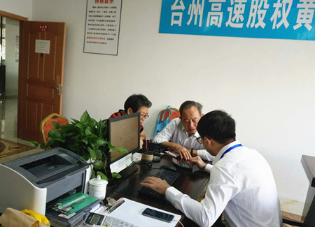 圖為黃巖收購點工作人員服務股東現場 “那時候沒錢,可咱領導干部要帶頭,這錢還是向自家兄弟借的。”這是原市府領導夫人的原話。 “科室里沒人認領,我想著咱也為臺州建設作點貢獻,就當捐款吧!沒想到后來真的有分紅,現在還有這么高的收購價,值了!”這是大多數股東的原話。