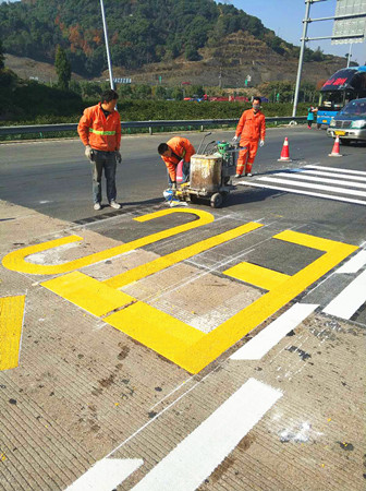 圖為工作人員繪制新的ETC標(biāo)線