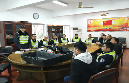 培訓中,陶文輝講解了“高速隧道火災特點”及呼吸器、防化服的使用方法及相關要求。話題開啟后,隊員們紛紛參與討論,爭相發言,講述各自在隧道事故處理中施救和應對的經歷與心得,交流平日巡查中所需注意的事項,互相提醒工作中的不足,并針對實際問題提出了許多建設性意見。同時,在主講人的現場演示下,參訓人員逐個“以身試法”,進一步熟悉和掌握了防毒面罩的穿戴方法。