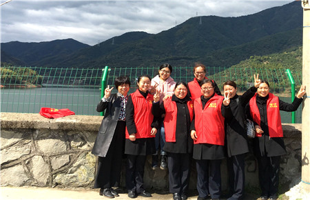 圖為臺(tái)州南女職工在水庫邊上合影