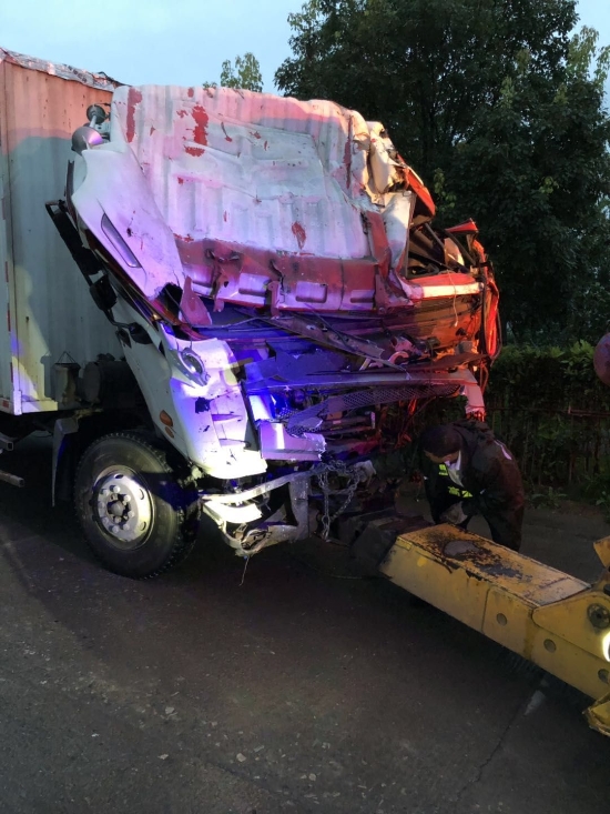 7點(diǎn)30分,經(jīng)過(guò)半小時(shí)的努力,在輔查員在一旁指揮下,拖車用纜繩進(jìn)行牽引,吊車配合,將車頭放置可以正常拖曳的地方。