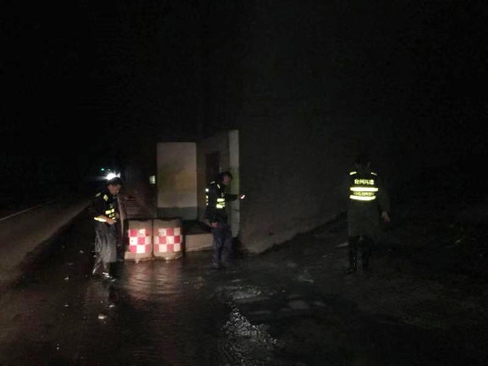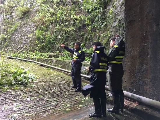 一大早,徹夜未眠的所負責(zé)人、執(zhí)勤隊員又開始緊張忙碌:巡查斜井、邊坡、山體、邊溝部位;檢查南北配電房漏水情況,確保臨時用電安全;查看所轄路段警示牌倒塌或受損情況;及時補充抽水泵等應(yīng)急物資,增加豎井排水設(shè)備,提高排水能力,預(yù)防隧道內(nèi)出現(xiàn)雨水倒灌現(xiàn)象;給停電停水的馬宗嶺隧道人員送去糧食和飲用水等物資,做好后勤保障。