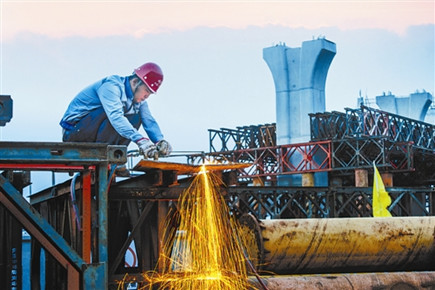 臺州高速市政公司在市內環路建設中,緊盯全線11月11日通車目標不放松,取得較好效果。截至8月30日,公司投資建設的內環路(黃巖段)已完成投資產值10.9億元,占合同總價的93%。圖為6號立交的施工人員正在緊張施工。 本報通訊員鐘 彪攝