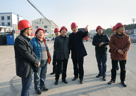 圖為總經理張建平在8#立交工地聽取工程介紹