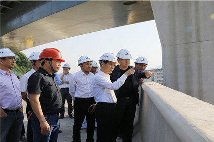 圖為副市長(zhǎng)張加波在6#立交橋上聽(tīng)取工作匯報(bào)